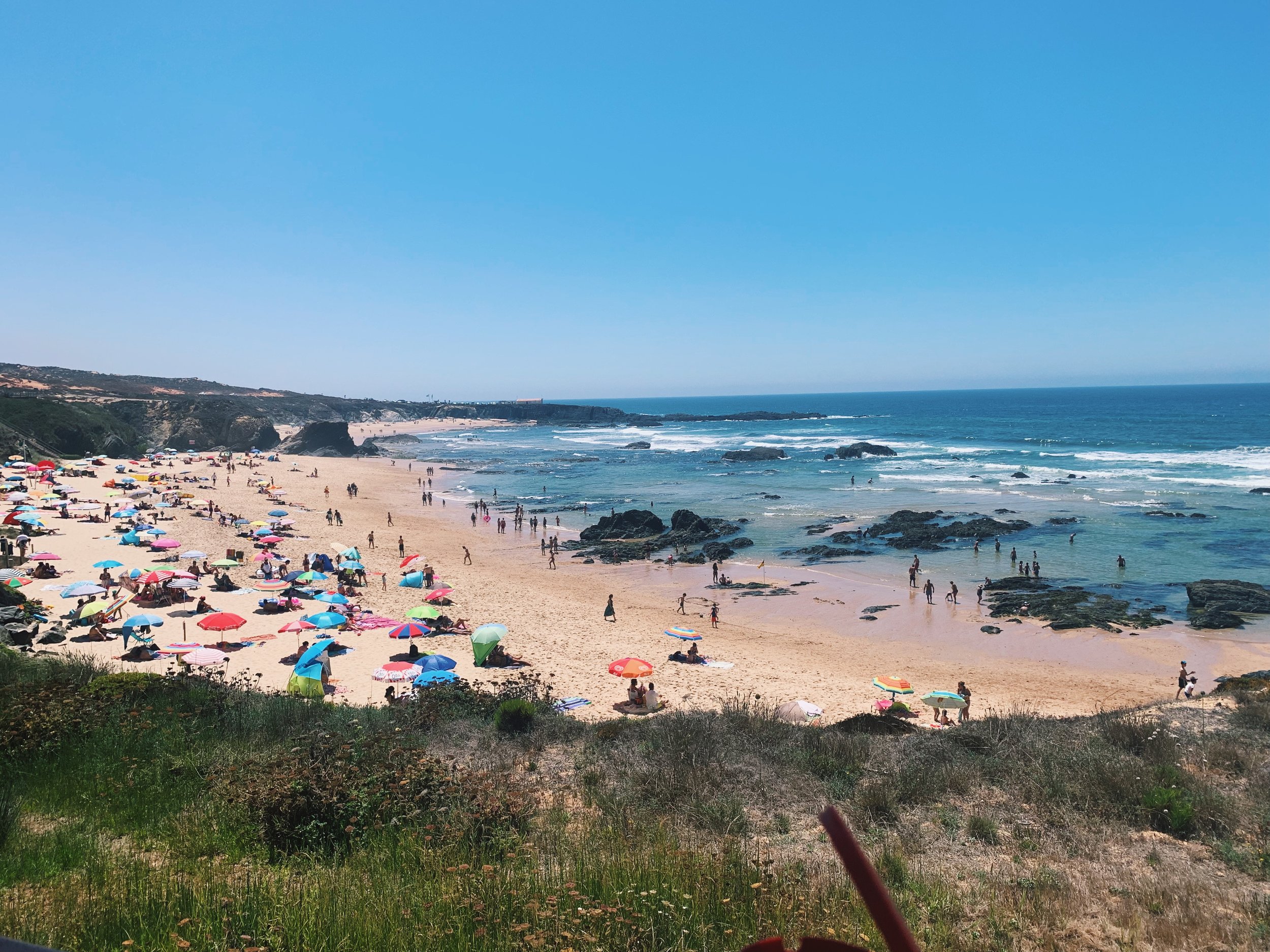 After breakfast, we are free to do exactly as we please. Certain mornings we hop in the stick-shift car that our German fellow yogi maneuvers through the fields and out to the ocean. Fifteen minutes and we’re in Almograve, the first Portuguese beach I lay eyes on with its cliffs and in-ocean rock formations proudly immovable. Defying American public beach standards, this paradise is free to enter with clean restrooms and a fish and cocktail bar engulfed in lilting Portuguese love songs played over the stereo for a post-swim snack.